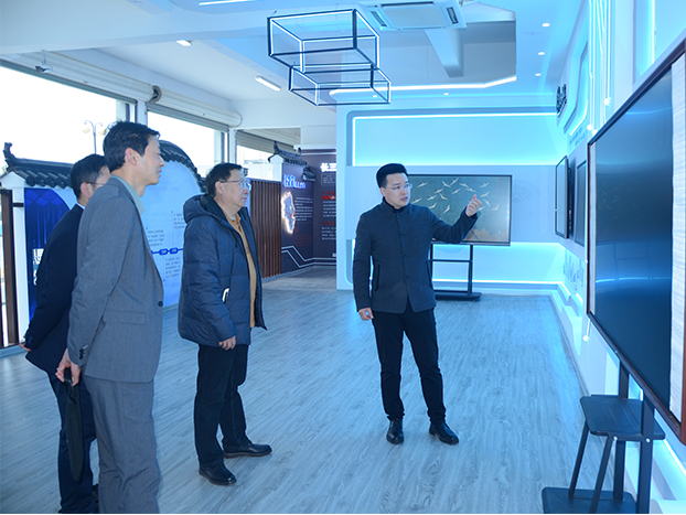 考察团参观了公司党建中心、、科技馆、、文化中心,,,详细了解公司在科技创新、、、、文化传承、、、、产学研合作、、、、产品生产销售等方面的情况,,,公司董事长丁中建陪同考察,,,并进行研讨交流。。。。