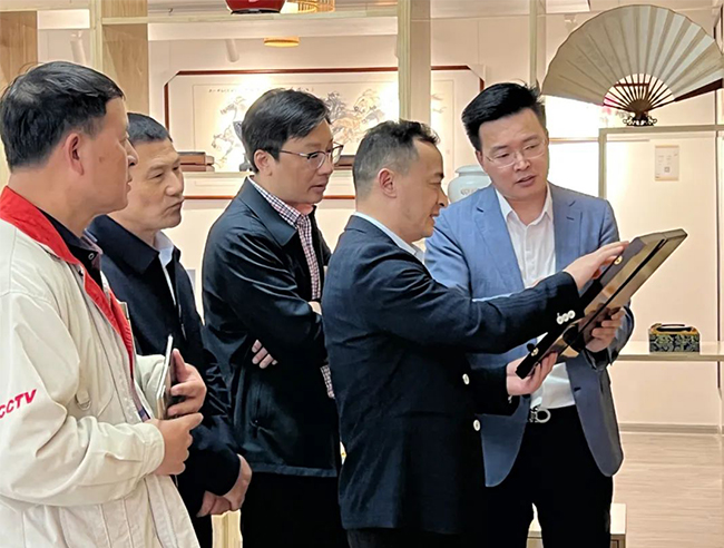 考察团一行先后参观了科技展示中心、、、、翰宣数字文化中心和研发生产实验室,详细了解了凯时尊龙科技20年的发展历程,,和科技融合文化项目的核心技术研发进展情况,,,并关切询问企业目前的困难和问题。。。。倾听企业建议,,畅谈未来发展。。。。公司技术总监沈兵、、行政总监唐先佩、、策划总监章云云陪同座谈。。
